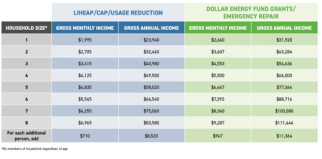 To qualify, a household’s gross income must fall within the program’s income guidelines — and the limits are often higher than people expect. Customers do not need to be on public assistance or carry an unpaid balance to apply.