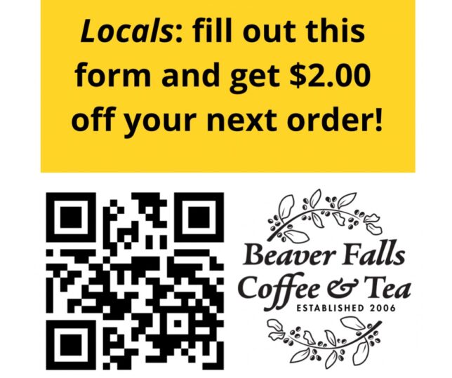 (Beaver Falls, Pa.) Beaver Falls Coffee and Tea announced via their social media that they will be moving to street level, right next door to their current location. They are looking for your input to help by filling out a feedback survey and let them know what you want and need in their neighborhood. You can fill out the survey by using the QR code below.