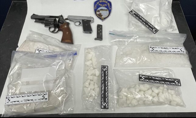 (Beaver Falls, PA) Multiple search warrants on Wednesday in Beaver Falls caused two people to get charged and one of them to be arrested. According to a release from the City of Beaver Falls Police Department, both their officers and the City of Beaver Falls Police Narcotics Unit Detectives executed two simultaneous search warrants on properties in the 1000 block of 11th Street and the 1300 block of Third Avenue. Police seized “large quantities” of crack cocaine, cocaine, fentanyl and heroin and methamphetamine from the scenes as well as drug trafficking items, two firearms and containers made to conceal contraband. Abigal Record was arrested by police at 309 Short 10th Street on a warrant from another investigation. The charges against her include possession of a controlled substance and possession with intent to deliver a controlled substance. Police state that they found more contraband and executed a search warrant for the 10th Street home during the arrest of Record. They seized $650 in cash, more crack cocaine, cocaine, heroin/fentanyl, as well as three firearms at that house. Police also confirm that David Charski will be charged as a person not to possess firearms.
